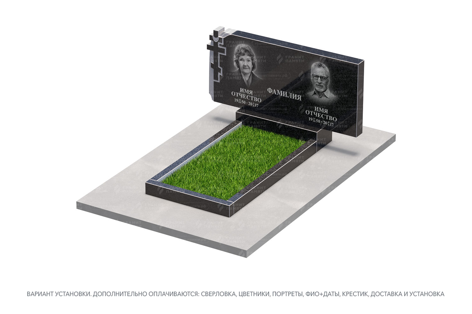 цветник, сверловка, портрет, ФИО+даты, крестик, доставка, установка.