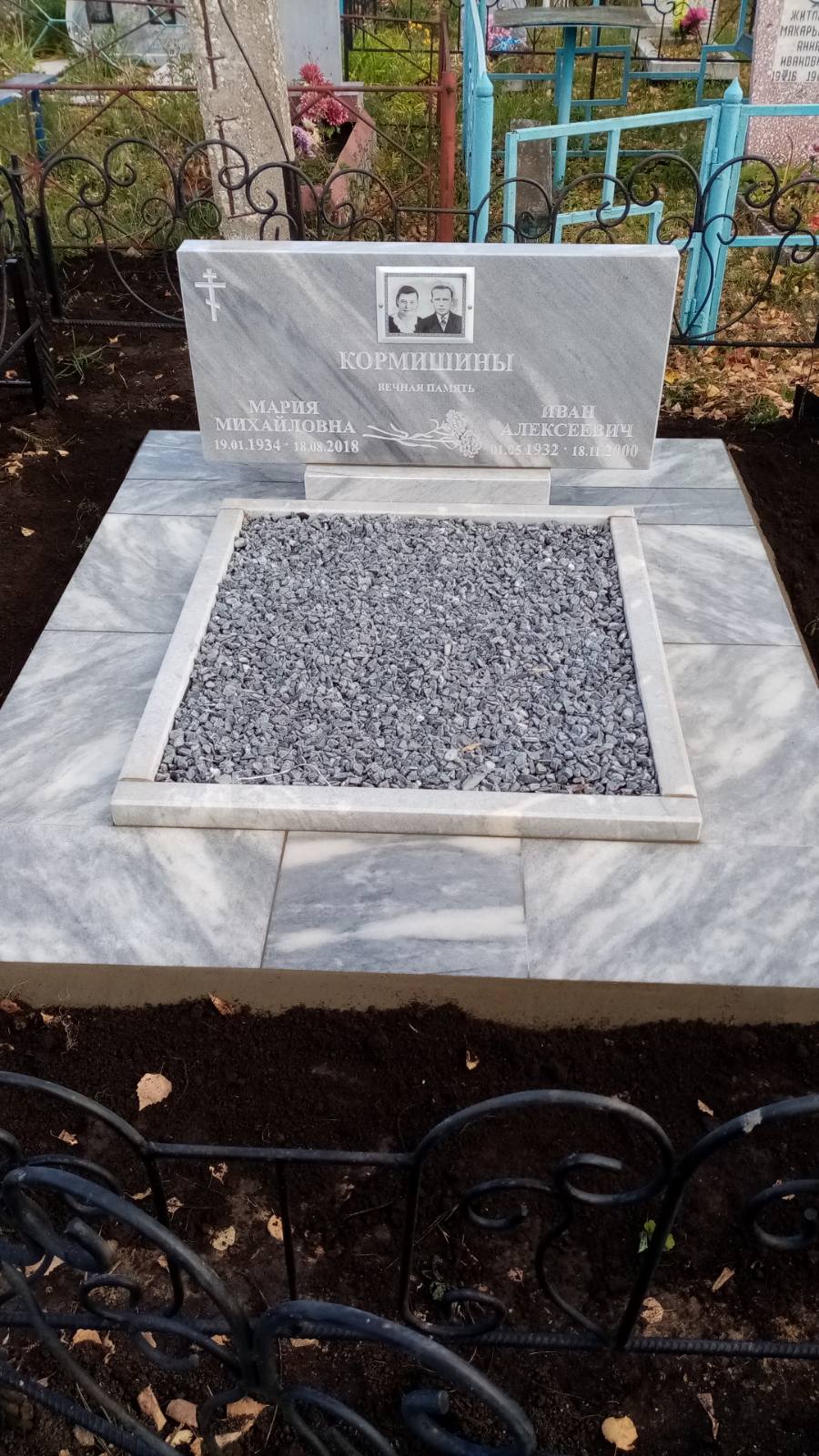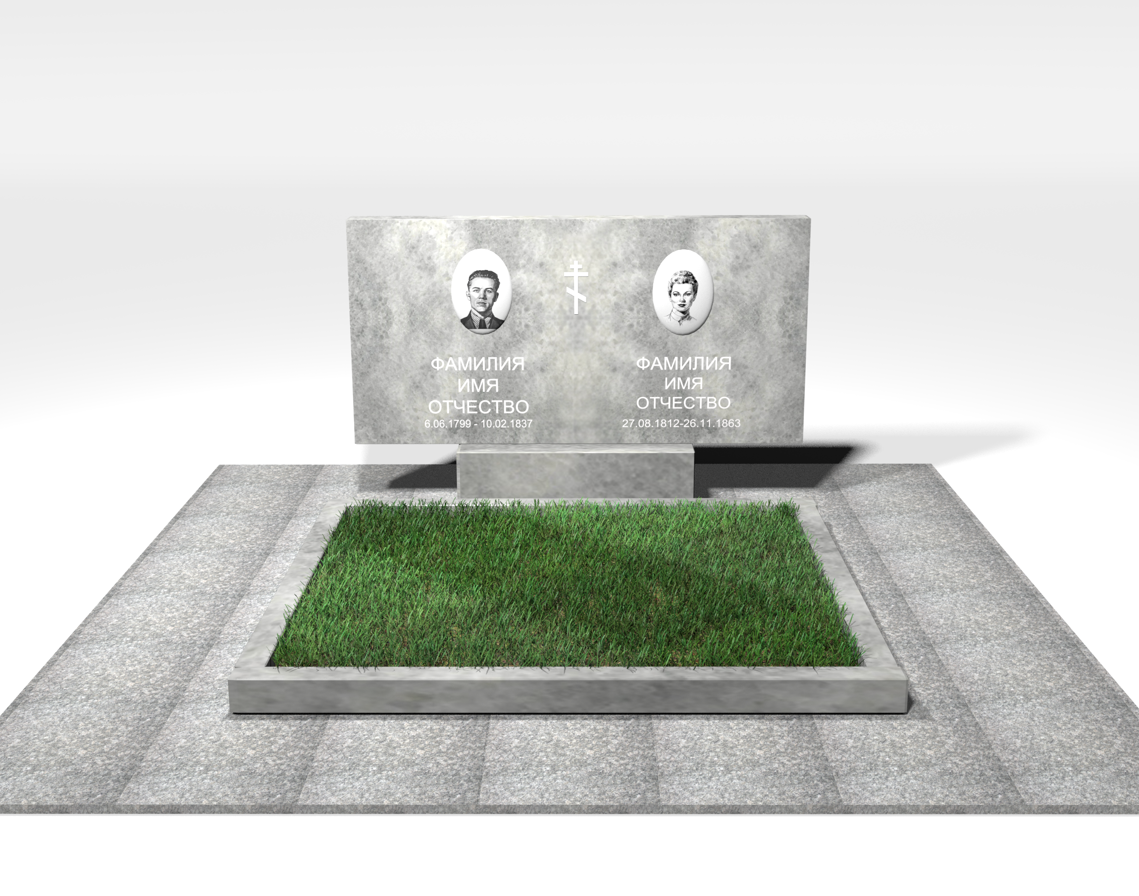Памятник двойной универсален. Форма Без формы подходит для увековечивания памяти и мужчины и женщины. Памятник из натурального Мрамор не изменит своего первозданного вида многие десятилетия.