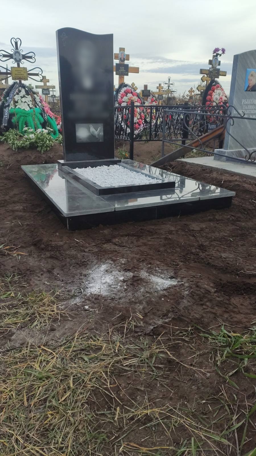 цветник, сверловка, портрет, ФИО+даты, крестик, доставка, установка.
