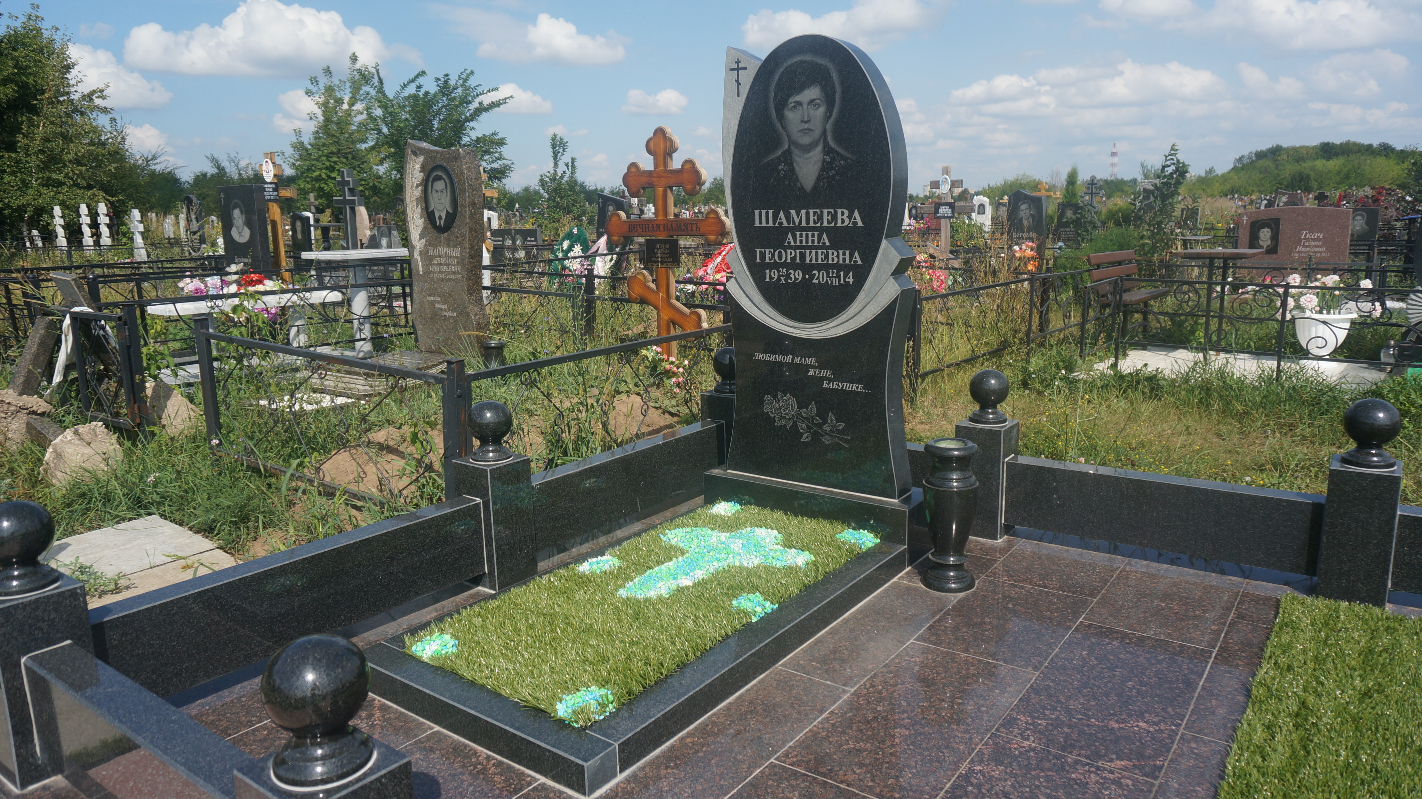 Дополнительно оплачиваются: гравировка (портрет, ФИО+даты, крестик, эпитафия, цветы), подготовка комплекта, оградка, установочные работы, доставка